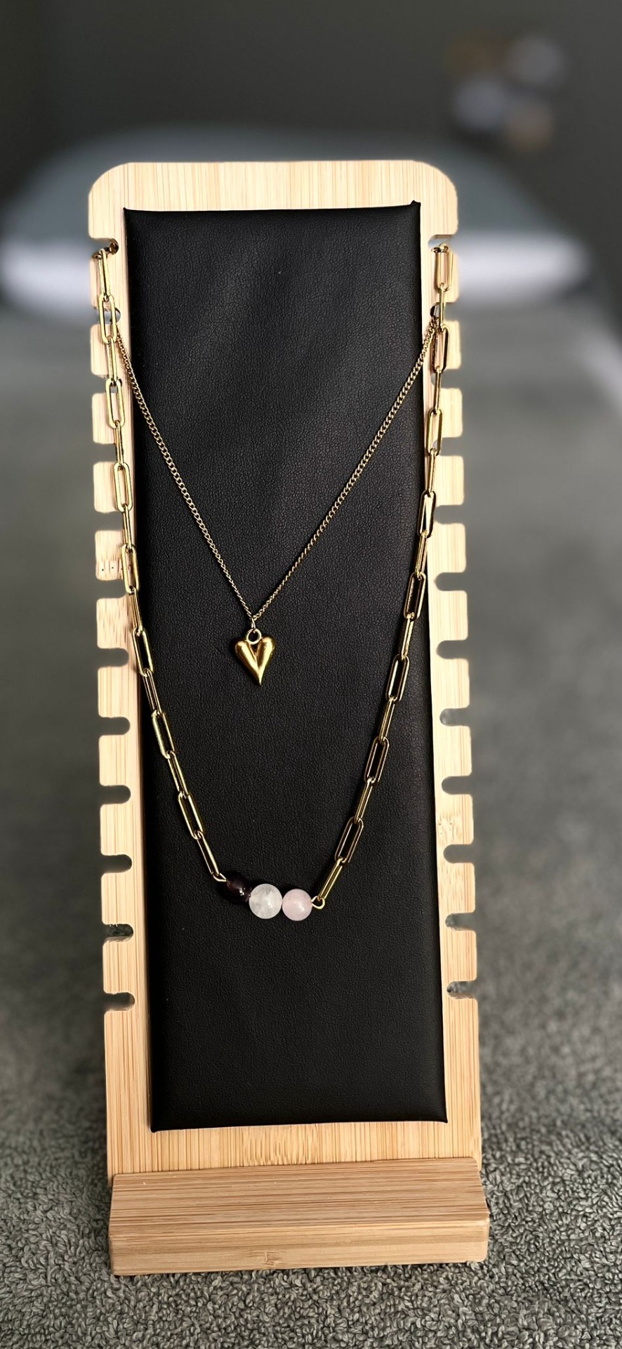 De gelaagde uitstraling geeft dit sieraad een speelse elegantie, terwijl het hartje een liefdevolle boodschap draagt: begin bij jezelf.